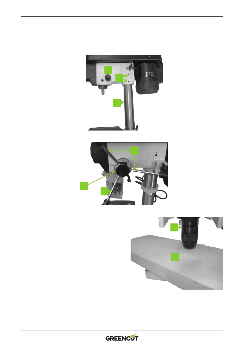 Vergewissern Sie sich, dass der Bohrkopf vollständig auf der Säule ausgerichtet ist, und sichern Sie ihn dann