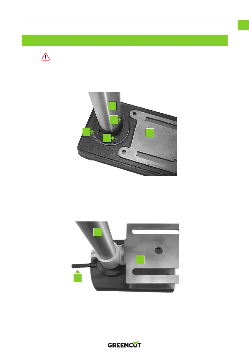 1. Coloque la columna (2) en la base (1) y alinee los oricios de la brida de montaje de la columna con los