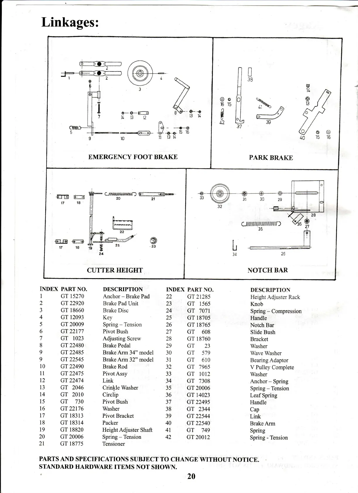 Greenfield Evolution Fastcut Series - EMERGENCY FOOT BRAKE; PARK BRAKE; CUTTER HEIGHT