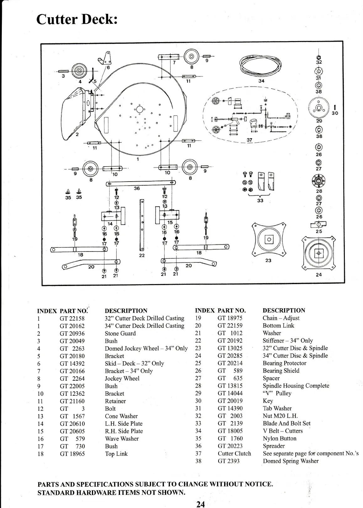 Greenfield Evolution Fastcut Series - Cutter Deck Components