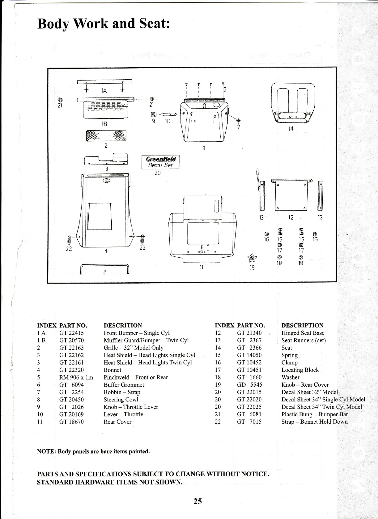 Greenfield Evolution Fastcut Series - Body Work and Seat