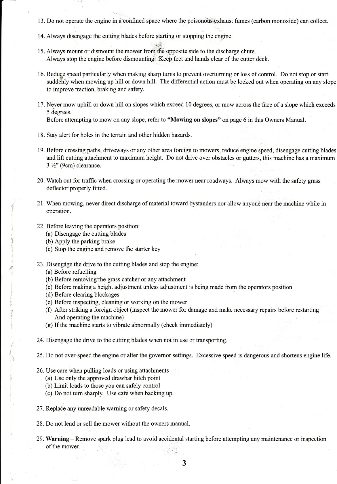 23. Disengeige the drive to the cutting blades and stop the engine: