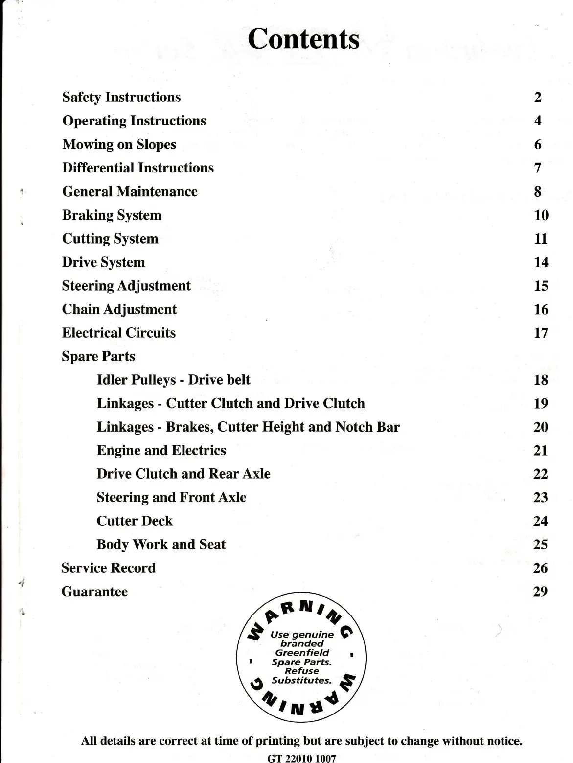 Greenfield Fastcut 34 - Contents