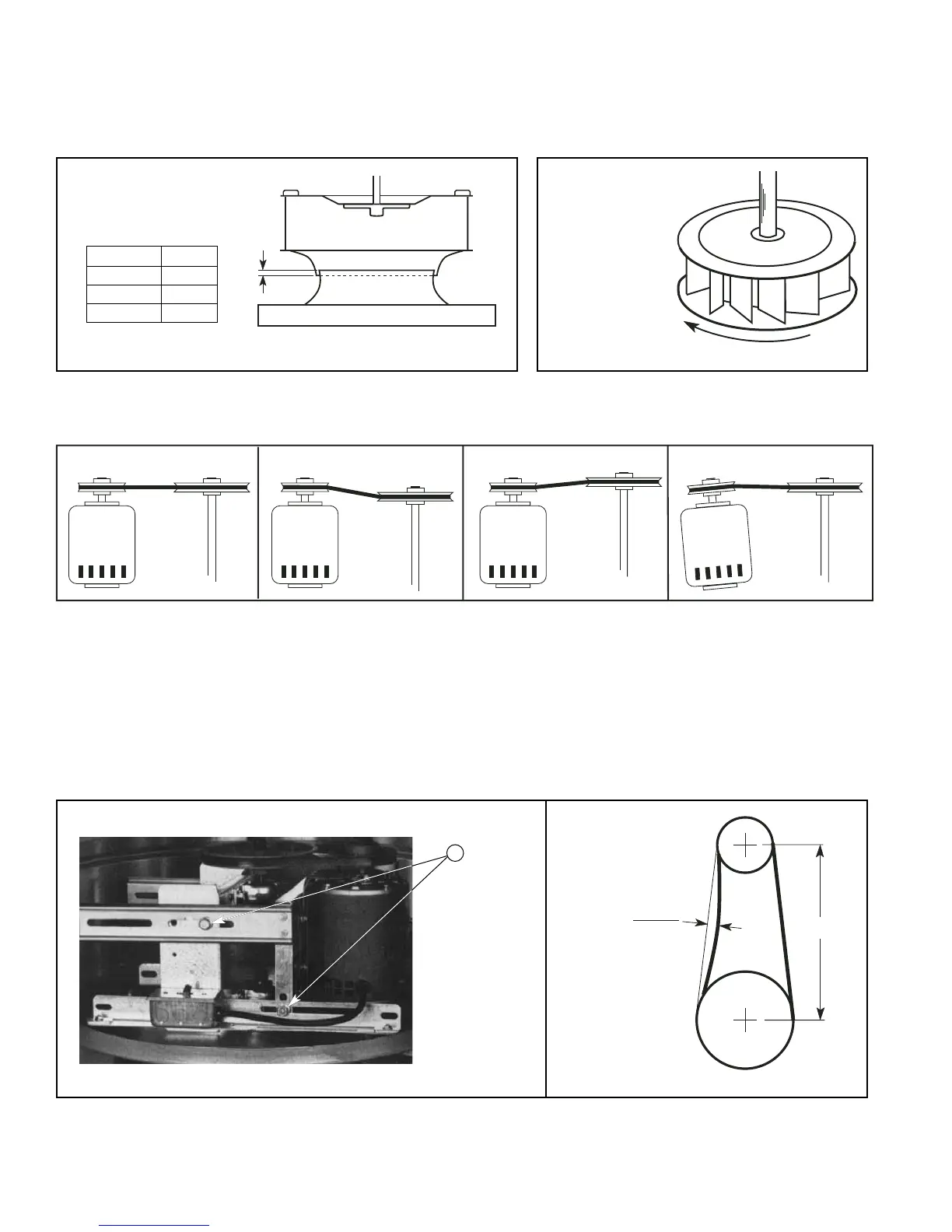 If adjustments are made, it is very important to check the pulleys for proper alignment. Misaligned pulleys lead to excessive