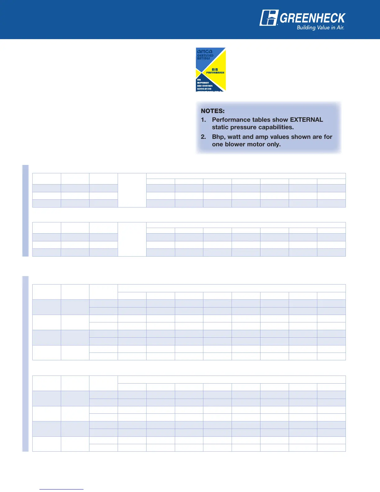the Air Performance AMCA seal. The ratings