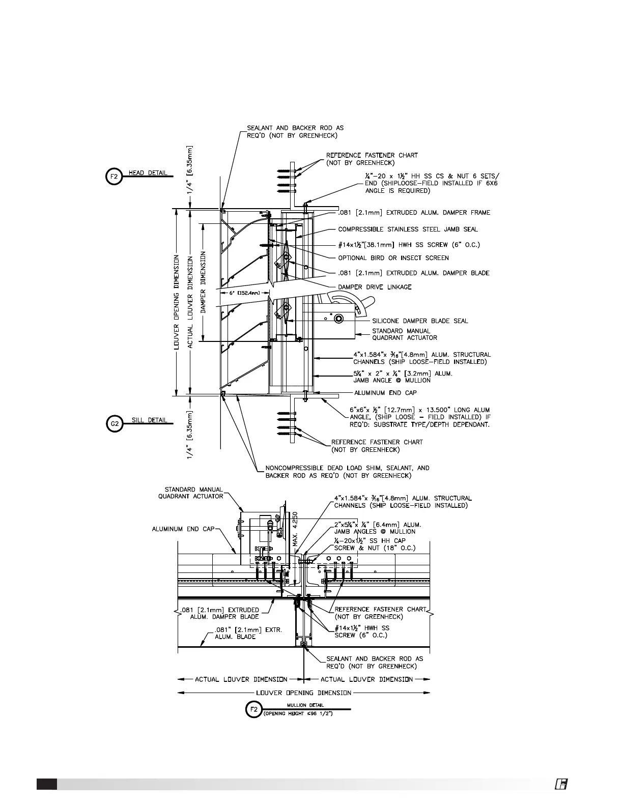 Greenheck ESD-635D - Multiple Sections Details; Head Detail; Sill Detail; Mullion Detail