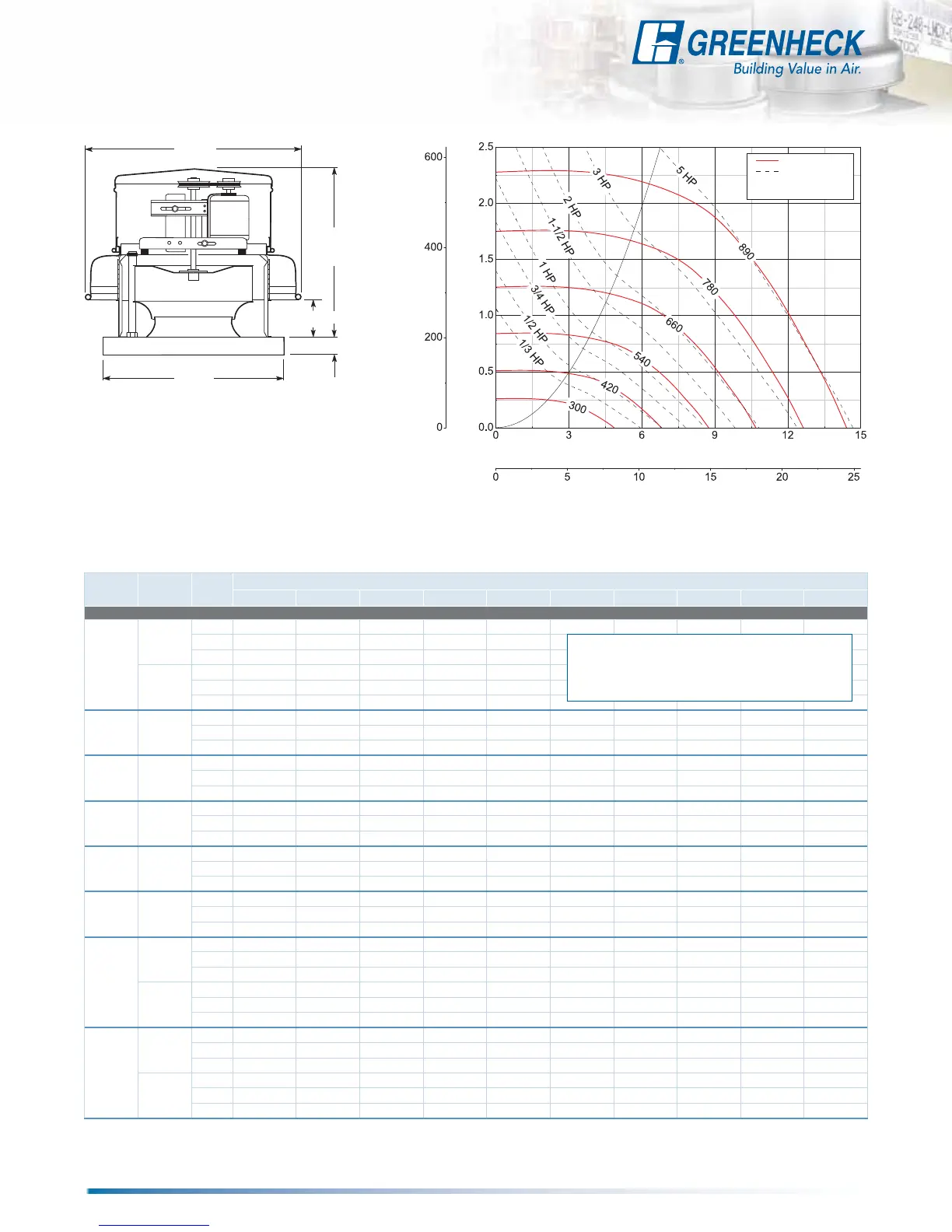 Performance certified is for installation type A: Free inlet, Free outlet. Power rating (BHP) does not include transmission losses. Performance ratings include the effects