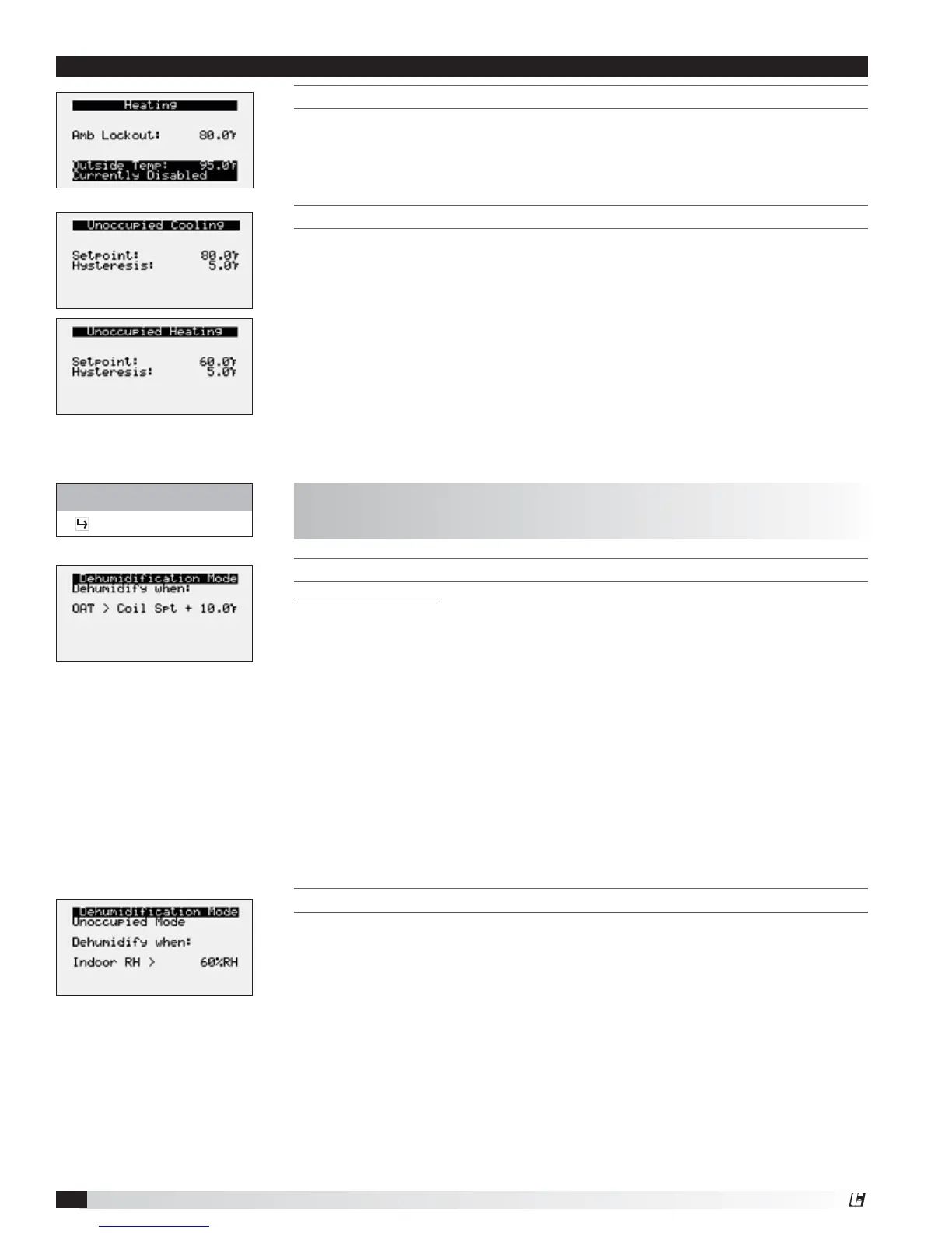 THIS SCREEN DISPLAYS METHOD FOR DEHUMIDIFICATION IN UNOCCUPIED MODE.