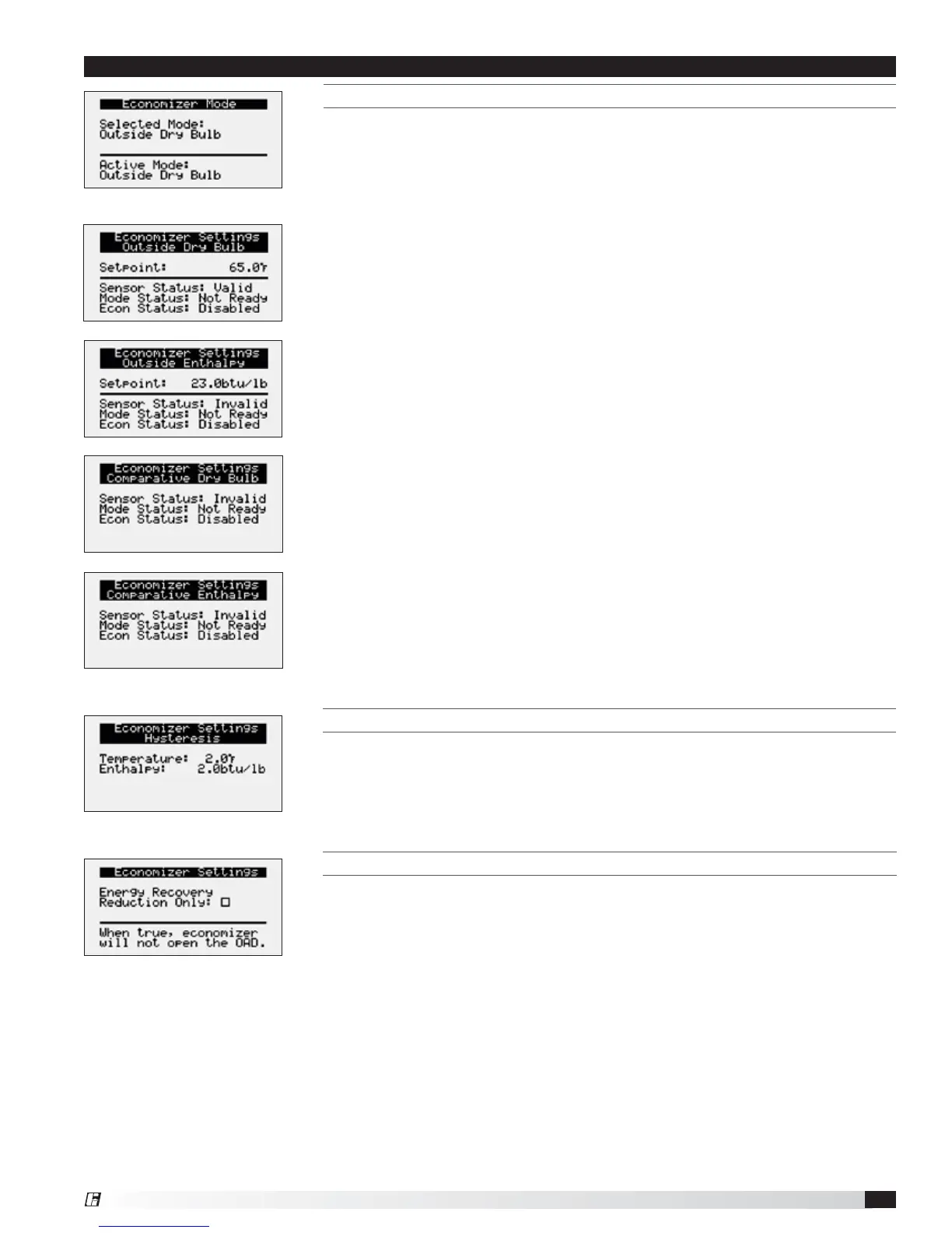 SCREENS DISPLAY ECONOMIZER CONTROL VARIABLES.