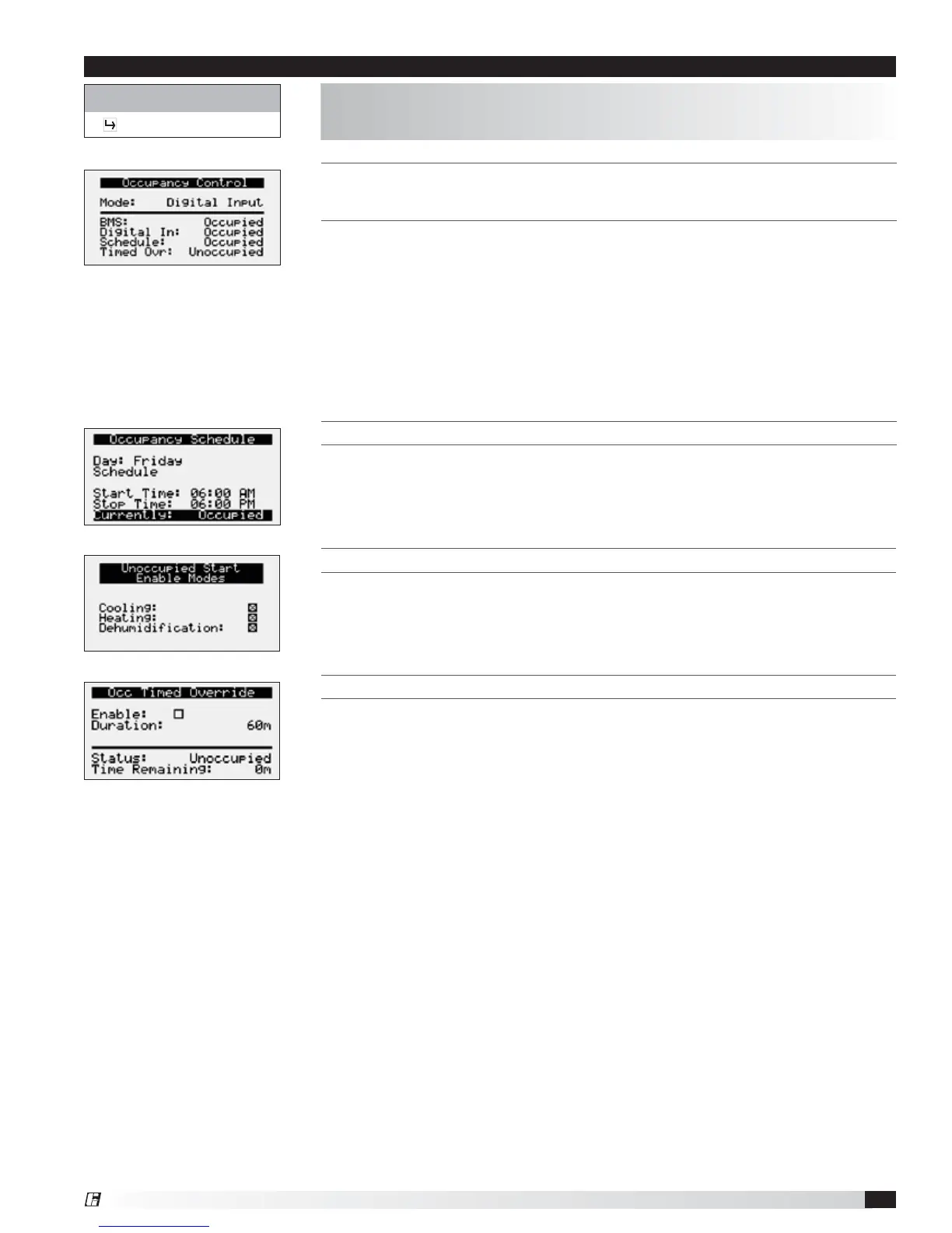 THIS SCREEN DISPLAYS OCCUPANCY OVERRIDE CONDITIONS.