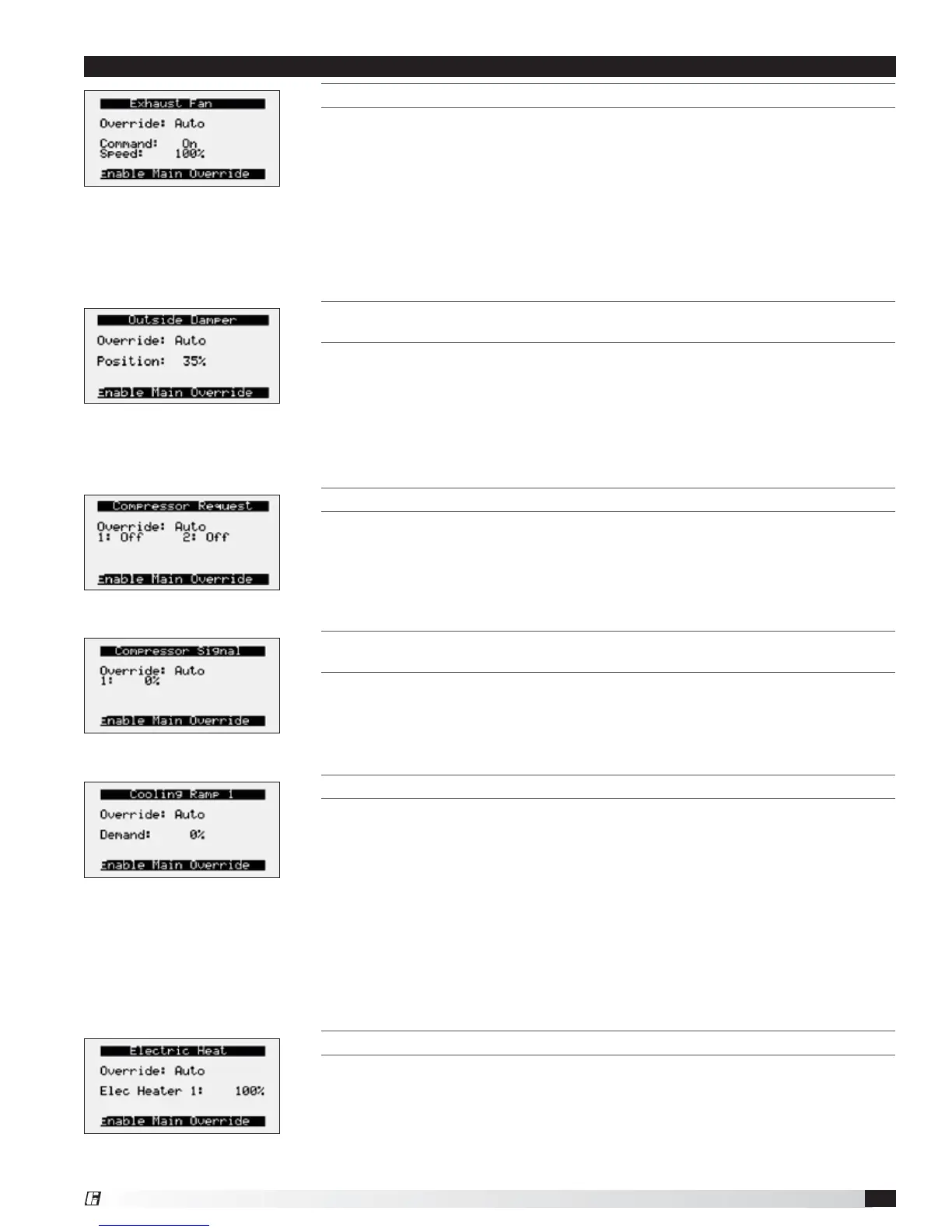 THIS SCREEN ALLOWS THE USER TO OVERRIDE THE MODULATING COMPRESSOR