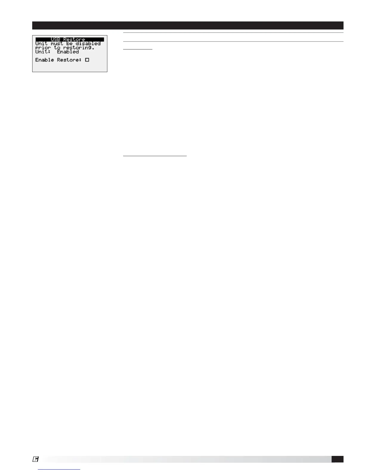 6. Press the Up or Down arrow buttons to navigate to the USB Restore screen.
