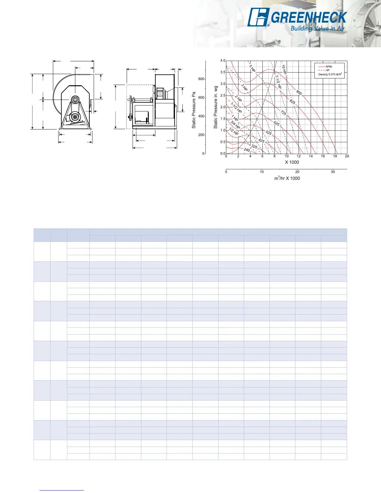 Performance certified is for installation Type B - Free inlet, Ducted outlet. Power rating (Bhp) does not include transmission losses. Performance ratings do not include the