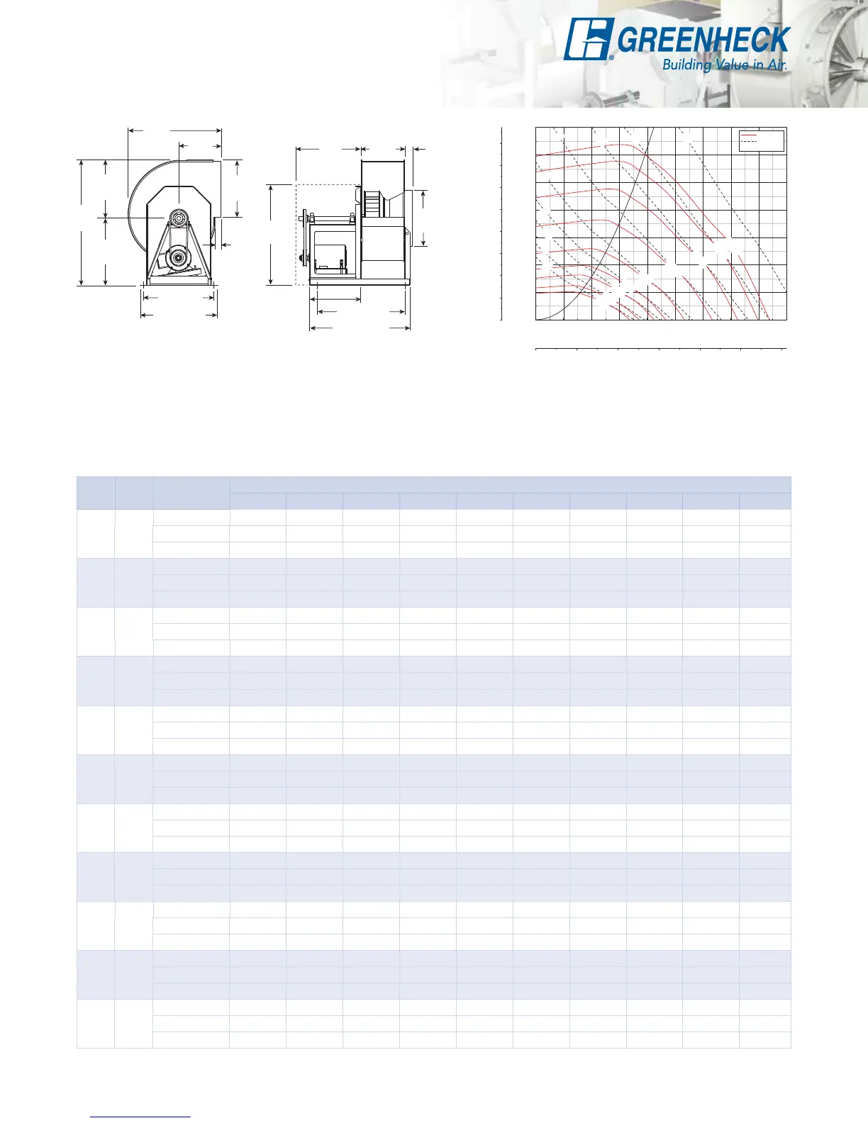 Performance certified is for installation type B: Free inlet, Ducted outlet. Power rating (Bhp) does not include transmission losses. Performance ratings do not include the
