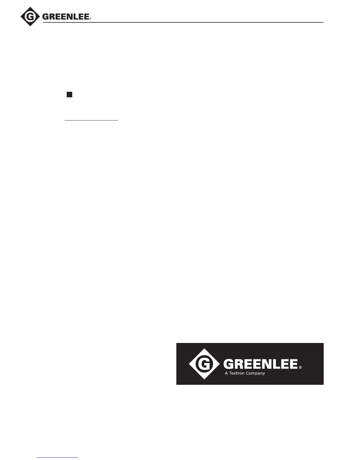 Greenlee / A Textron Company 14 4455 Boeing Dr. • Rockford, IL 61109-2988 USA • 815-397-7070