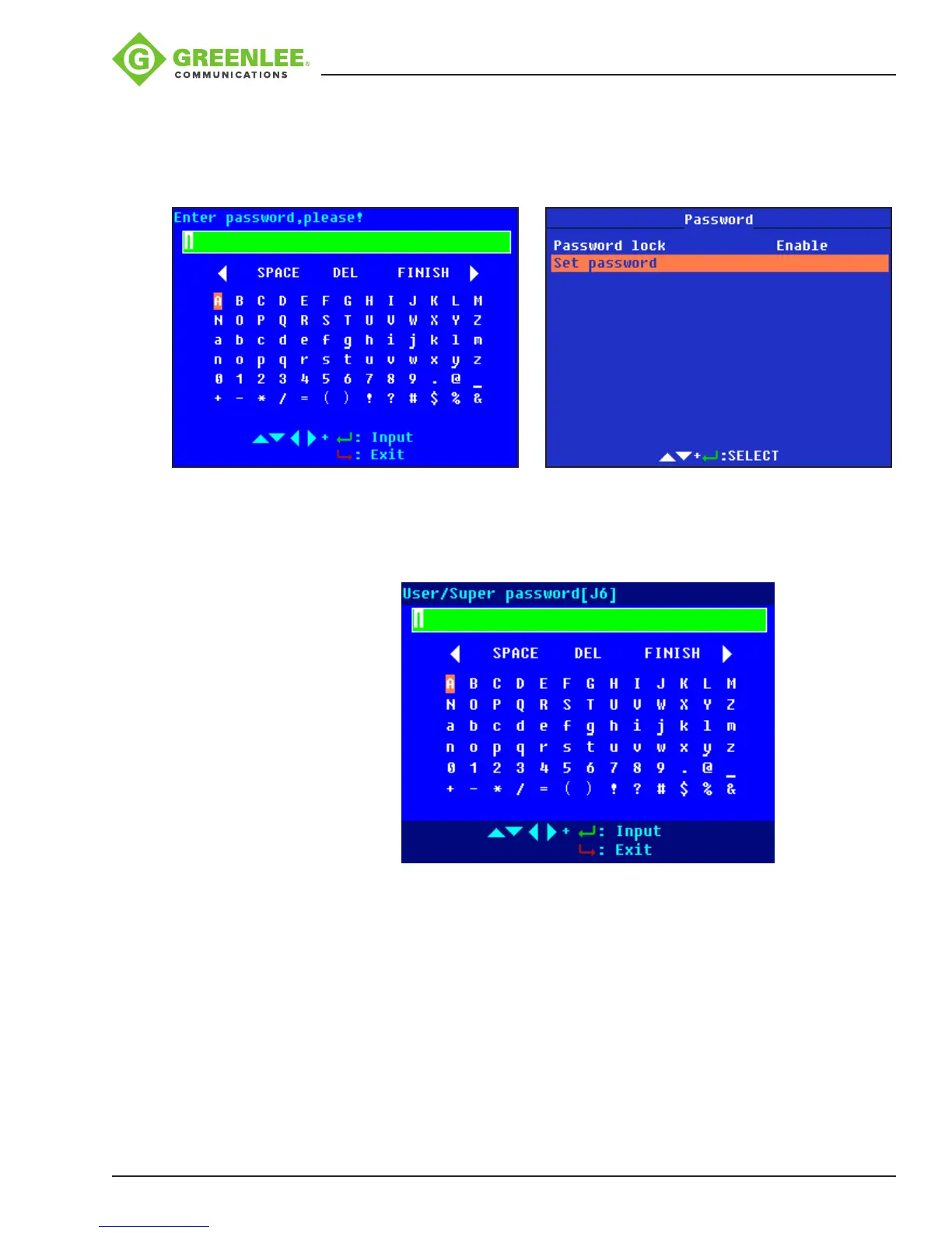 password. Use pqt u to select characters, add spaces, delete characters, or conrm.