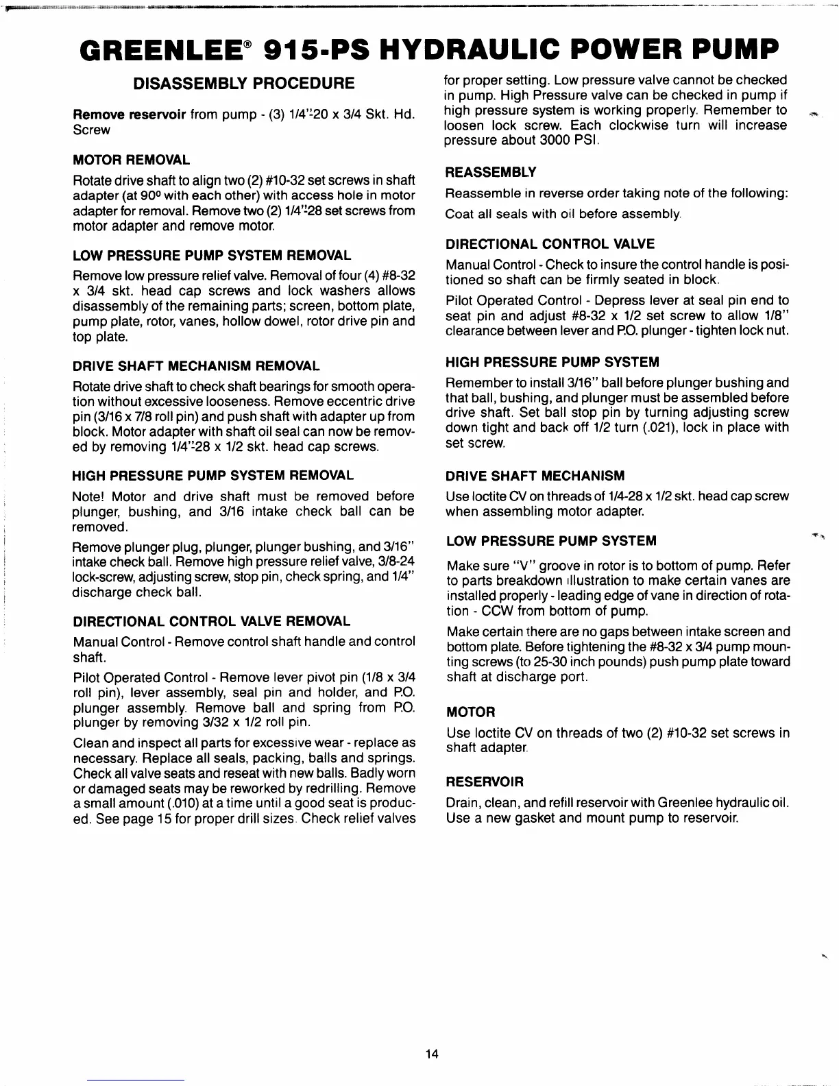 Greenlee 915-PS - Disassembly and Reassembly Procedures; Disassembly Procedure; Reassembly