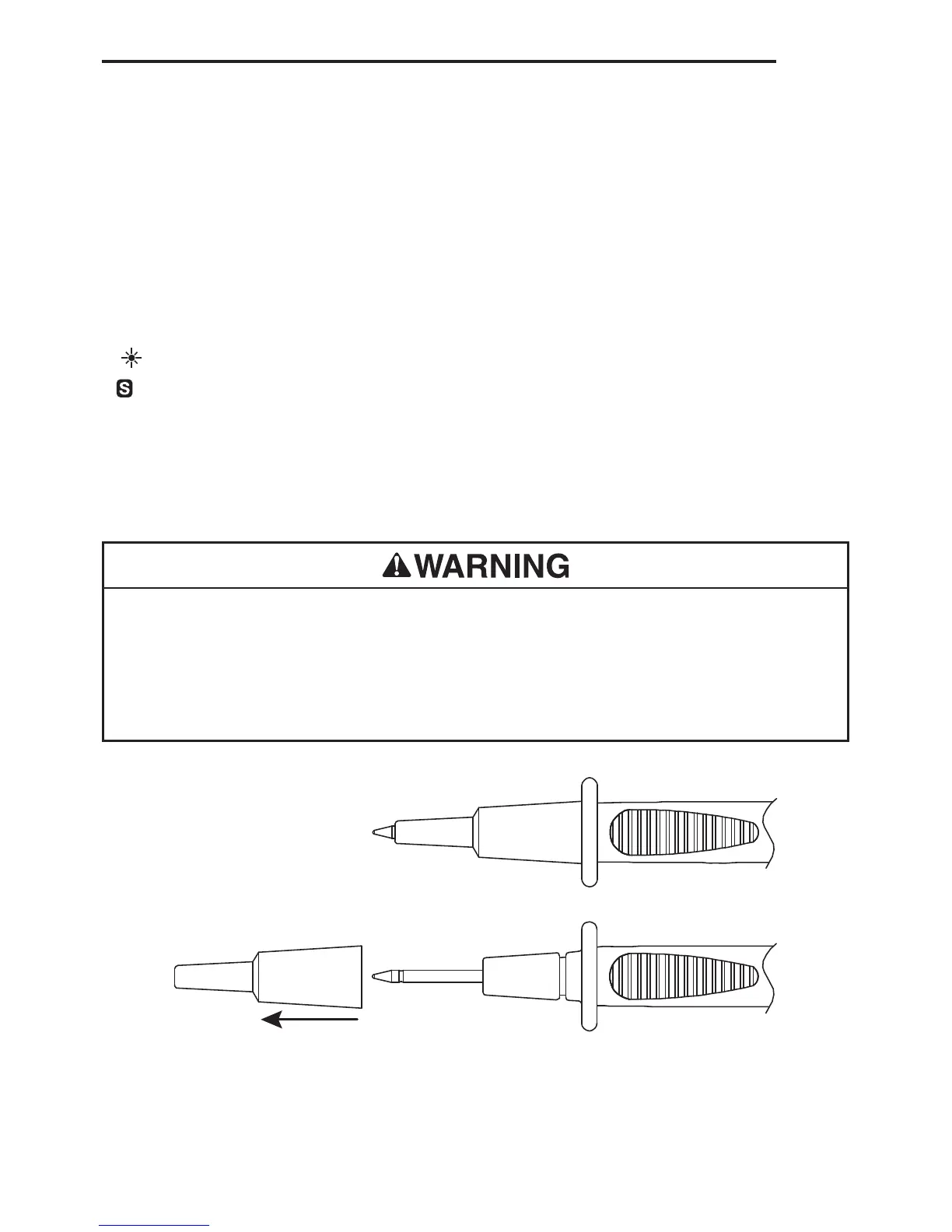 length of the probe tip to 4 mm for measurement categories III and IV. These test leads include a cap