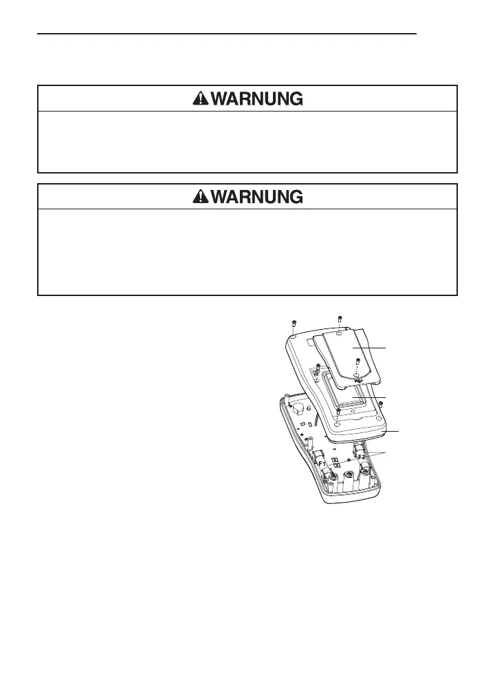 Vor dem Öffnen des Gehäuses die Messleitungen vom Stromkreis entfernen und das Gerät