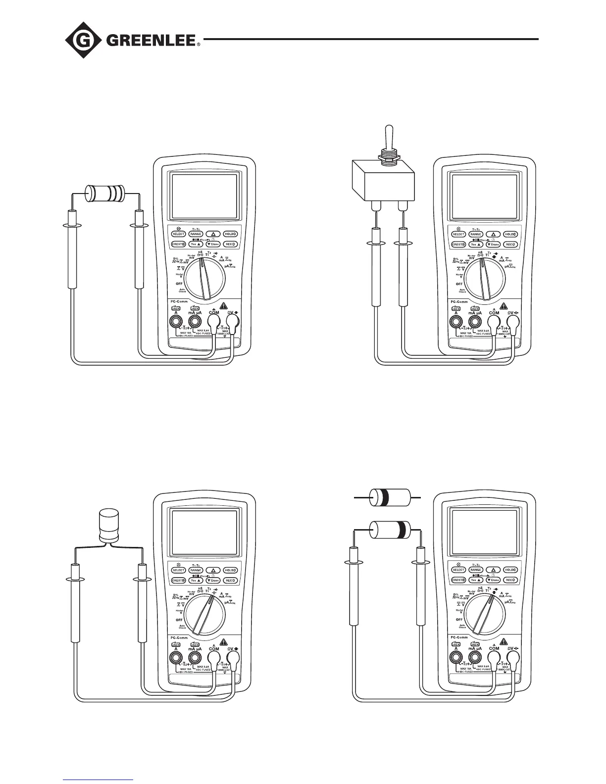 Greenlee DM-810A - Resistance and Continuity Setup; Capacitance and Diode Test Setup