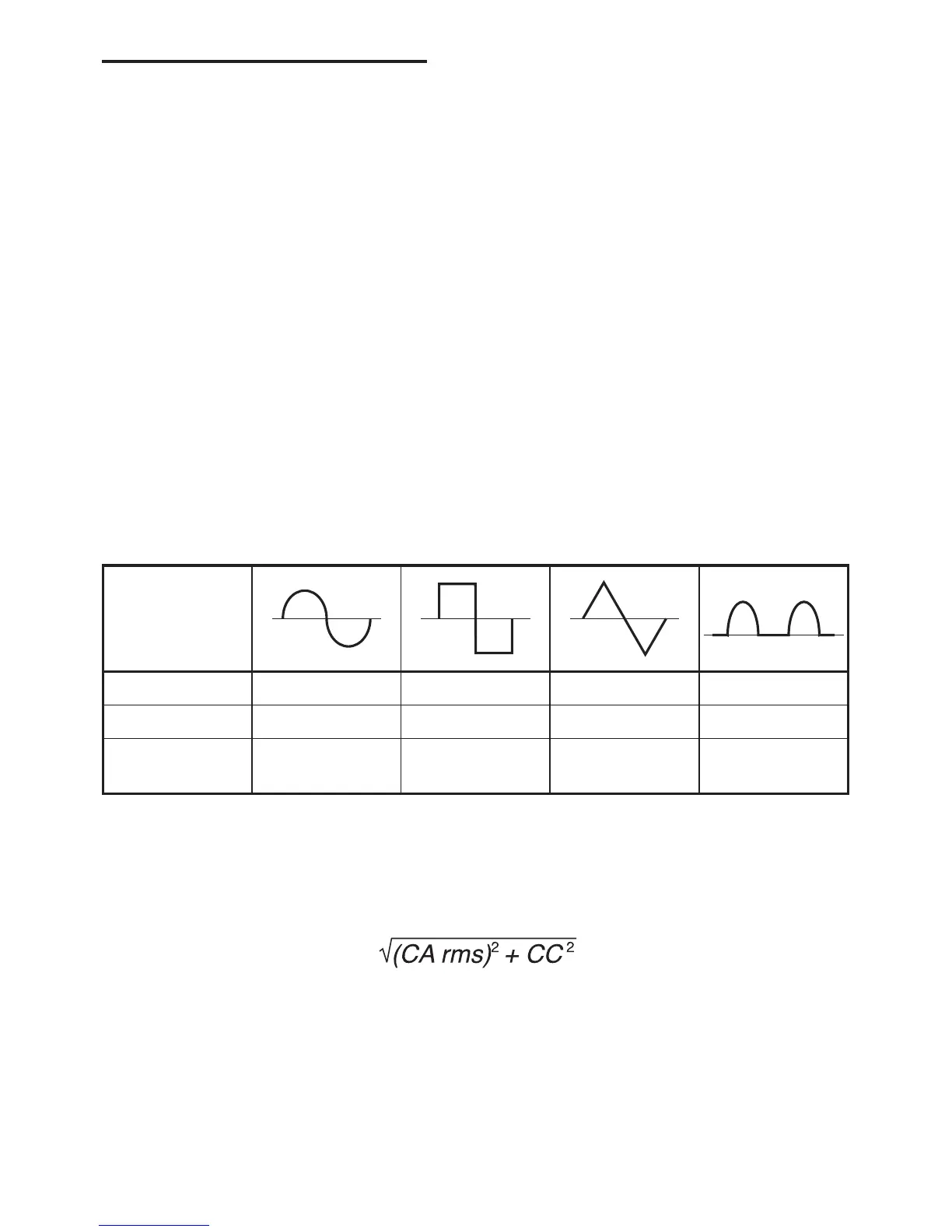 La tabla de Formas de onda y Factores de cresta muestra algunas de las señales de CA y sus valores