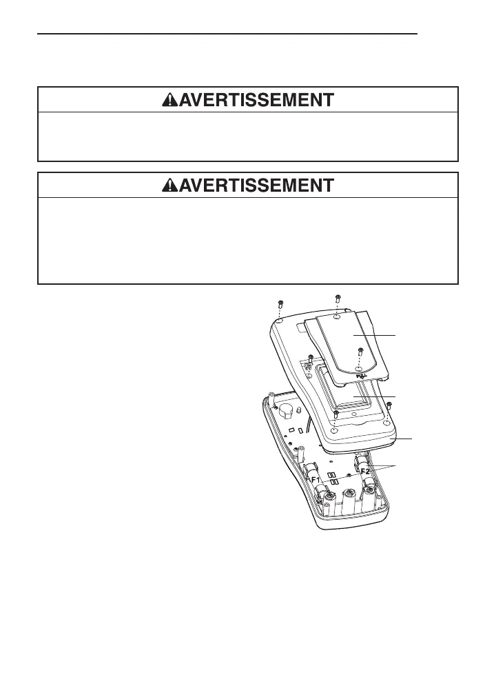 Avant d’ouvrir le boîtier, retirer les fils d’essai du circuit et mettre l’appareil hors tension.