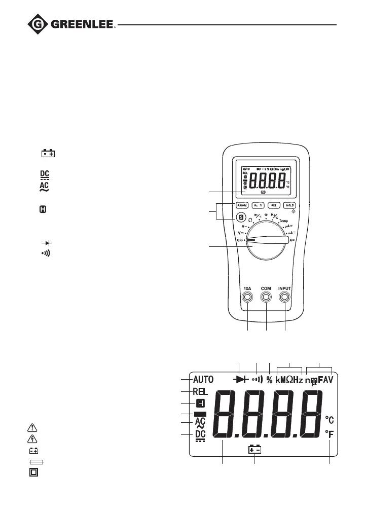 6. INPUT Positive input terminal for all measurements except high current.