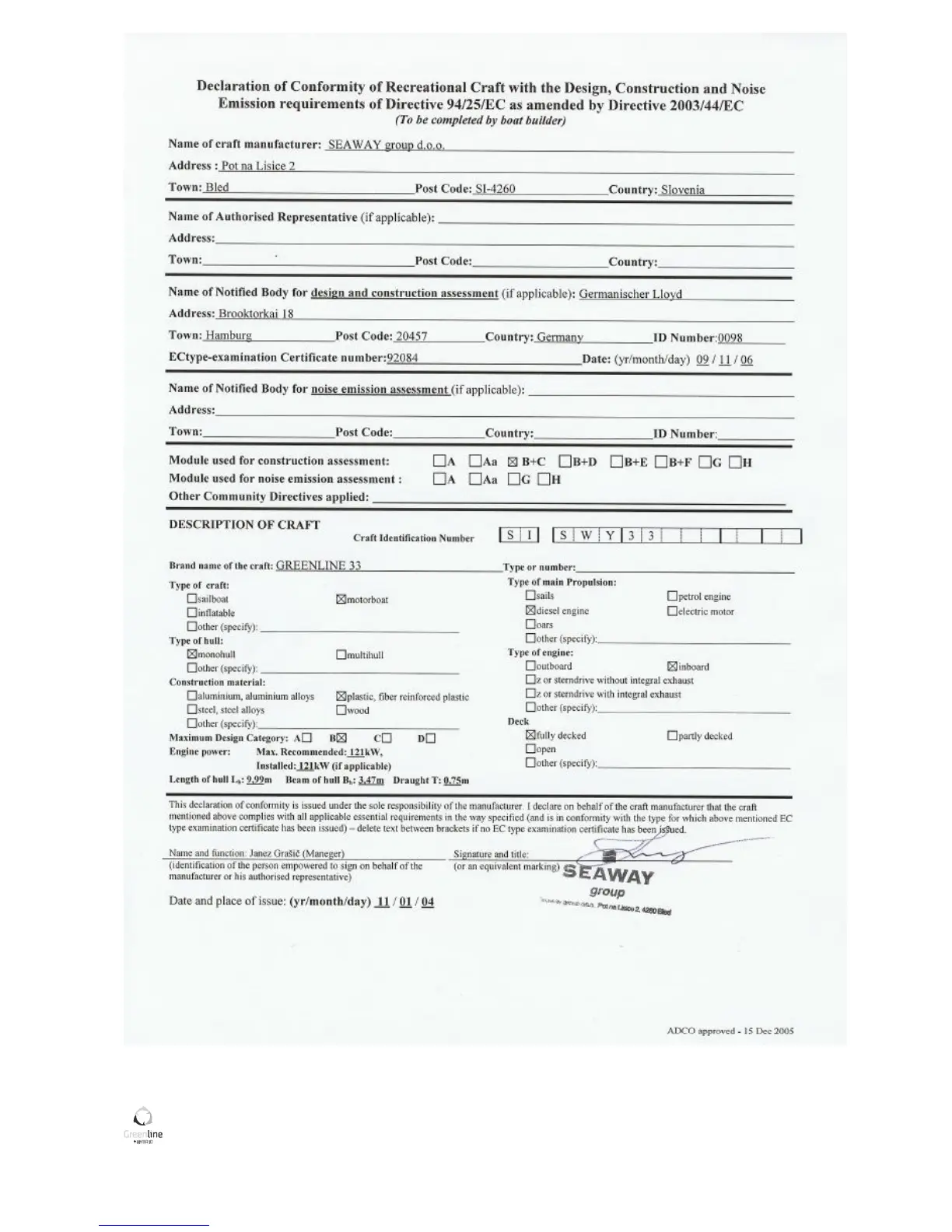 GREENLINE 33 - Figure 5: Declaration of Conformity