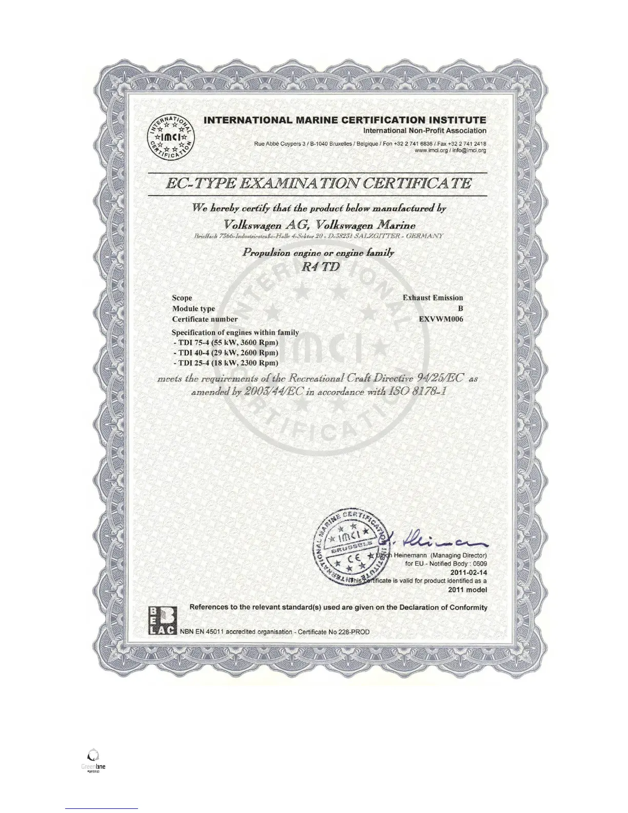 GREENLINE 40 - Figure 3: Engine Examination Certificate (CMD TDI 75-4)