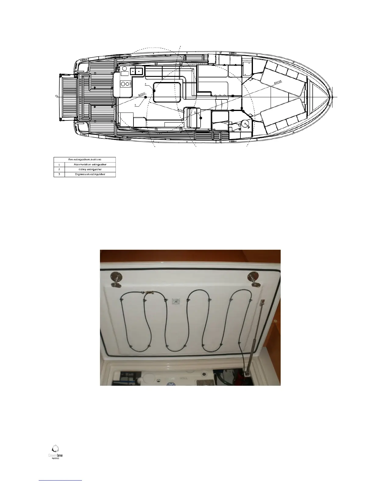 The engine compartment (if your boat is equipped with engine stronger than 120kW) is fitted with fixed
