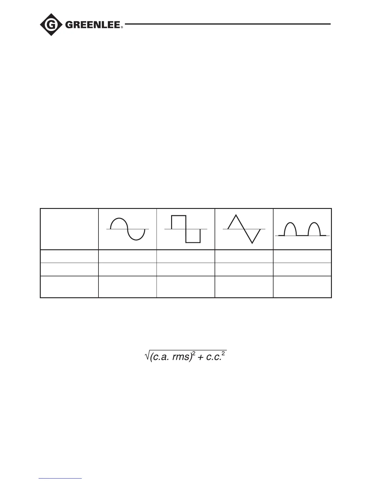 Le tableau des formes d’onde et facteurs de crête fournit les valeurs efficaces des signaux alternatifs