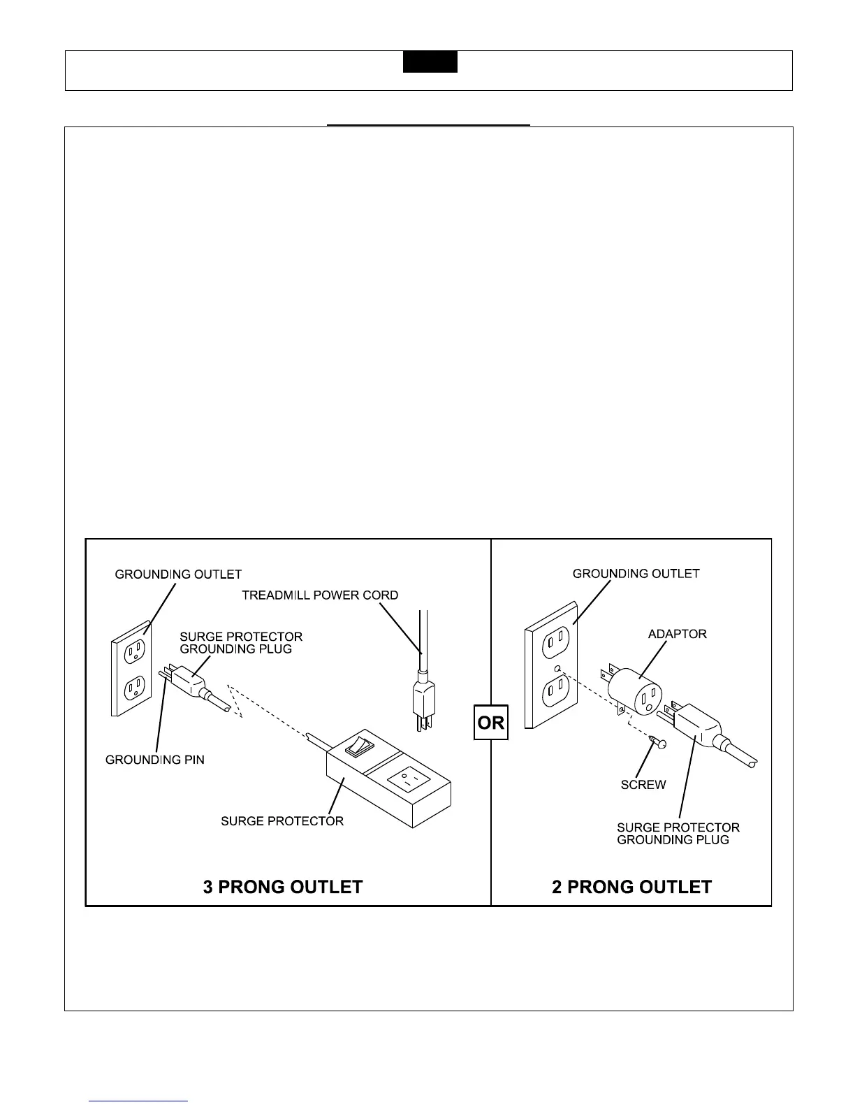 for electric current, should the treadmill malfunction. This treadmill comes with an electrical cord having an