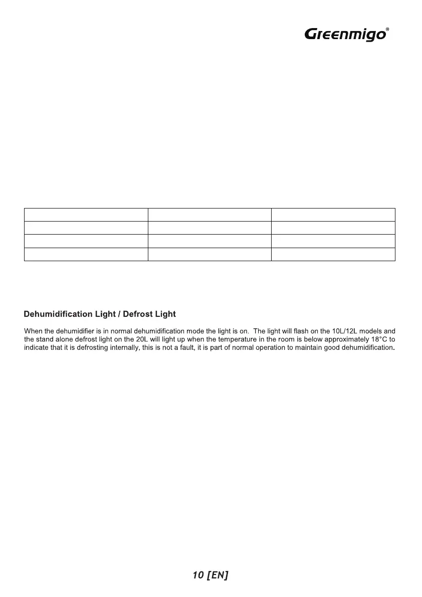 Note: When the water tank is full on sleeping mode, water tank full indicator will always be on.