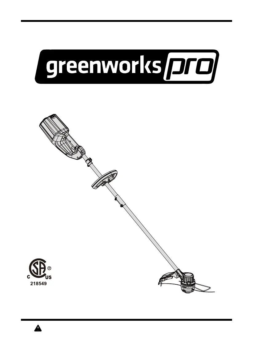 If your GreenWorks Pro Trimmer fails to start when the trigger lock button is depressed, make sure the battery pack is properly attached to the trimmer. If it is, remove the battery and reinstall it to ensure good electrical contact. Also, ensure the battery pack is adequately charged. You must press down the lock-off lever and hold it, then depress the trigger to turn on the string trimmer. Ensure that you first press the power button before pressing the trigger.