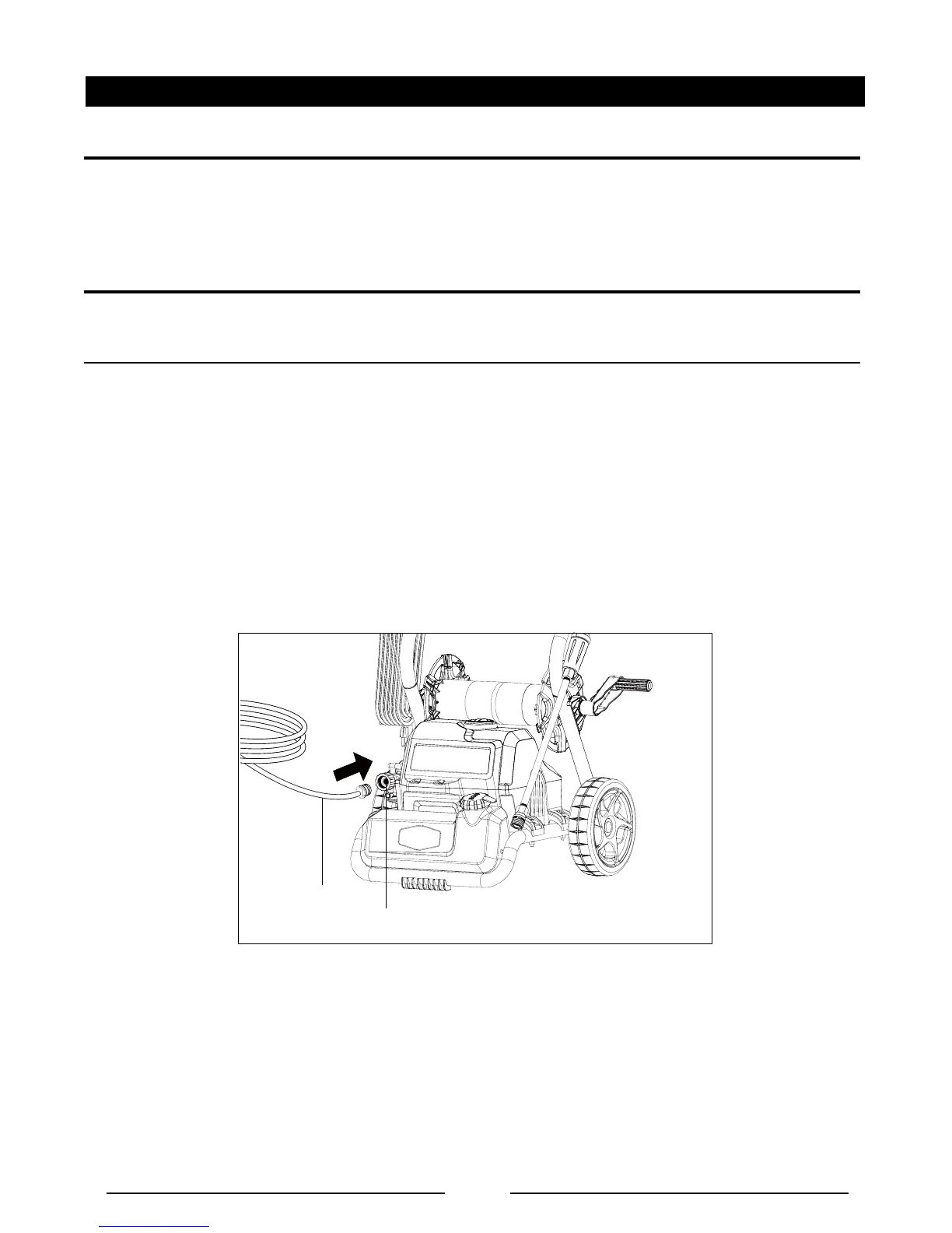 NOTE:There must be a minimum of 10 feet of unrestricted garden hose between the water intake and