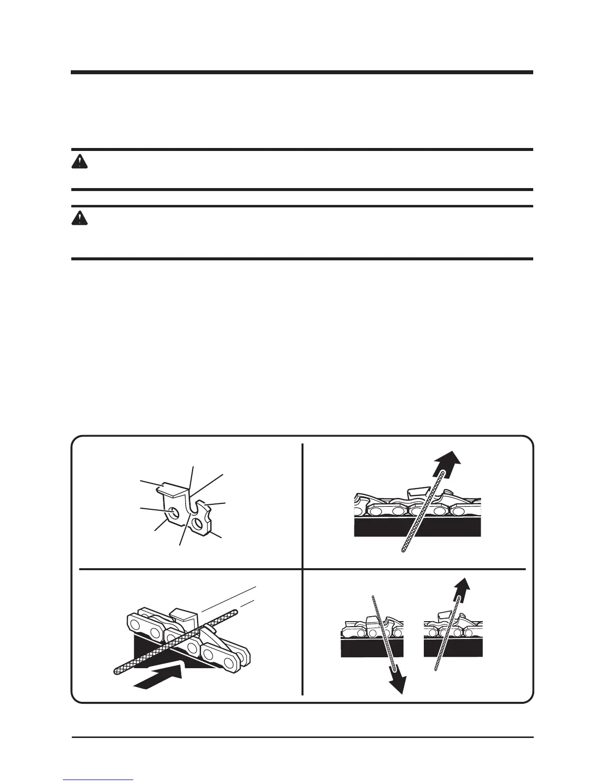 • Tension the chain prior to sharpening. Refer to Adjusting The Chain Tension.
