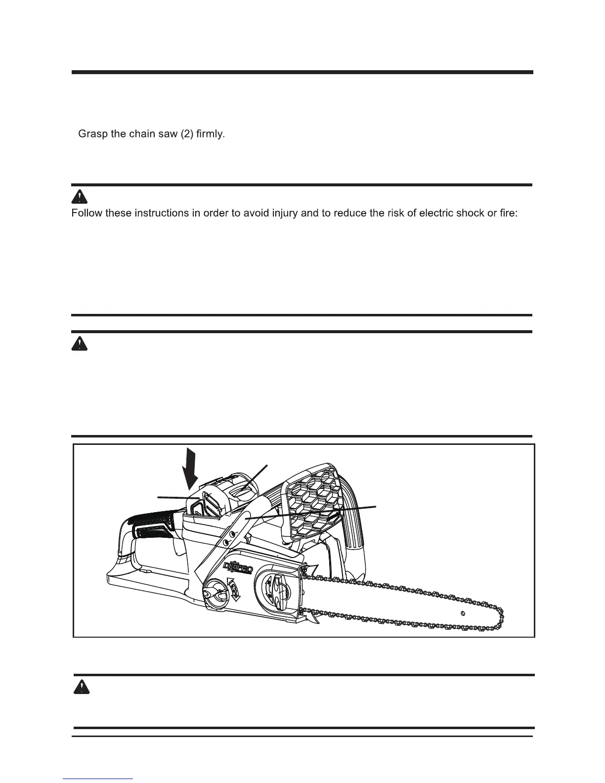 adjusting, or performing maintenance on any part of the chain saw.