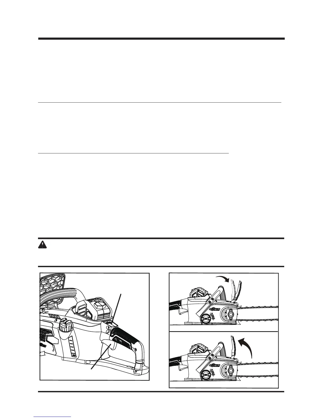 • Reset the chain brake back into the RUN posi¬tion by grasping the top of the chain brake