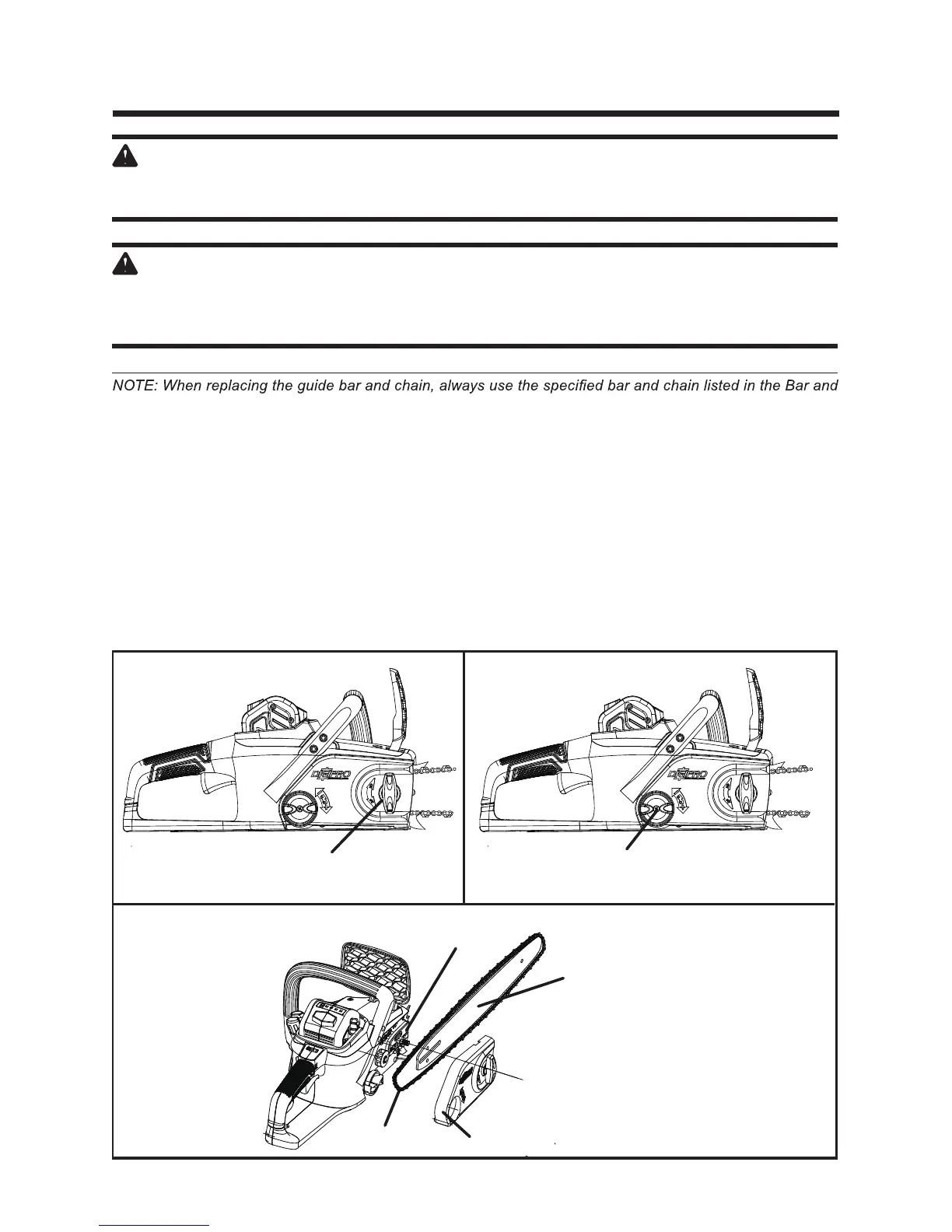 Always wear gloves when handling the bar and chain; these components are sharp and may