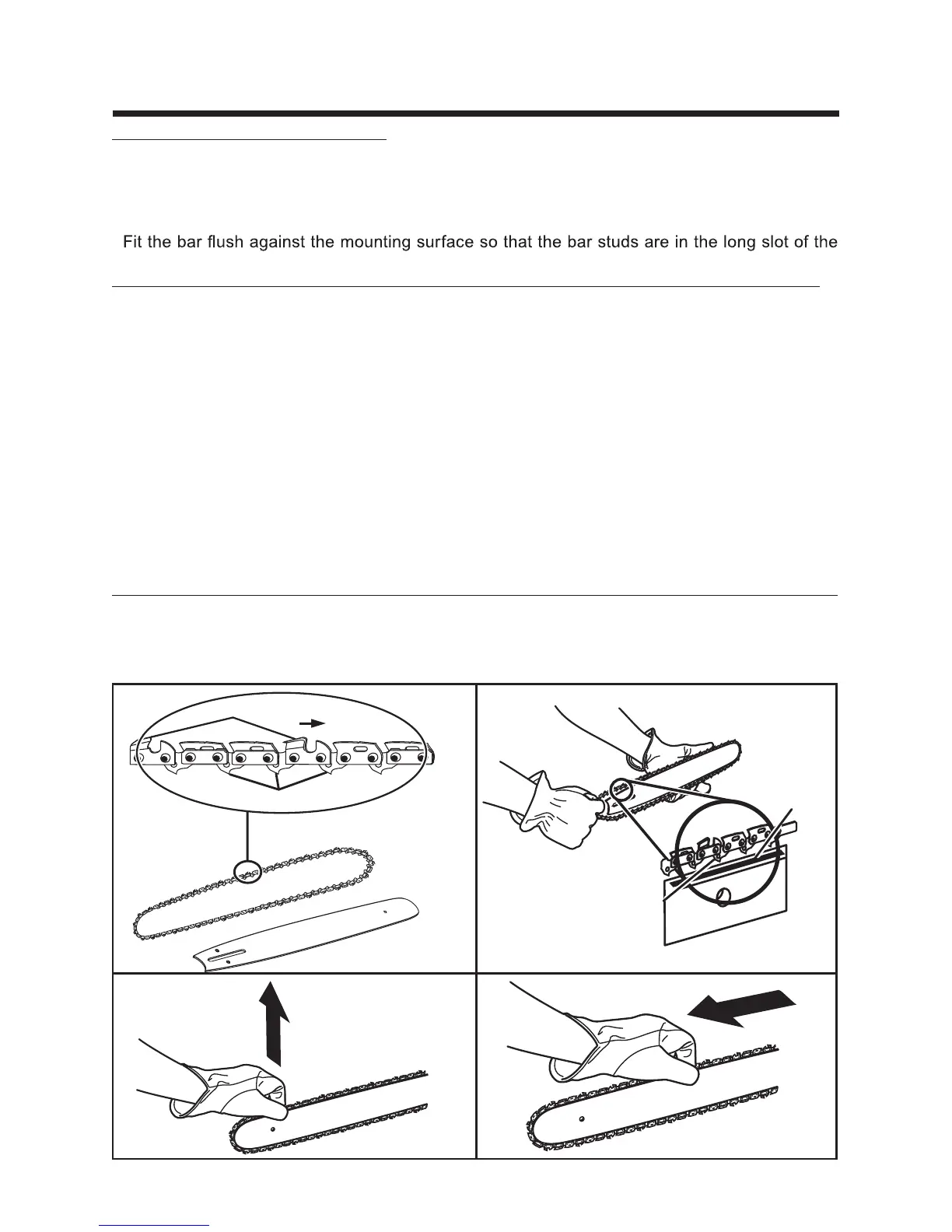 • Hold the chain in position on the bar and place the loop around the sprocket.