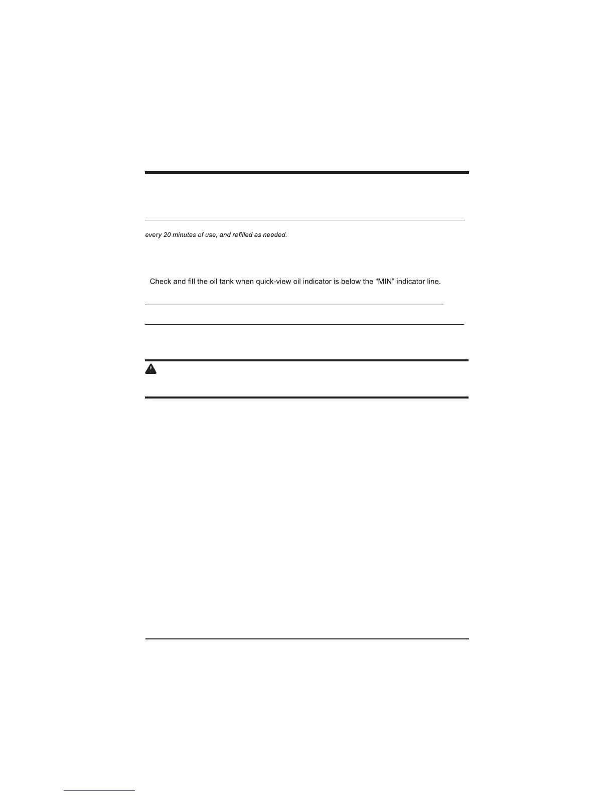 NOTE: It is normal for oil to seep from the saw when not in use. To prevent seepage, empty the oil tank after