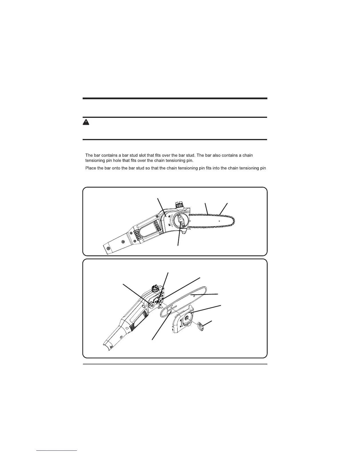 hole. Fit the chain over the sprocket and into the bar groove. The cutters on the top of the bar