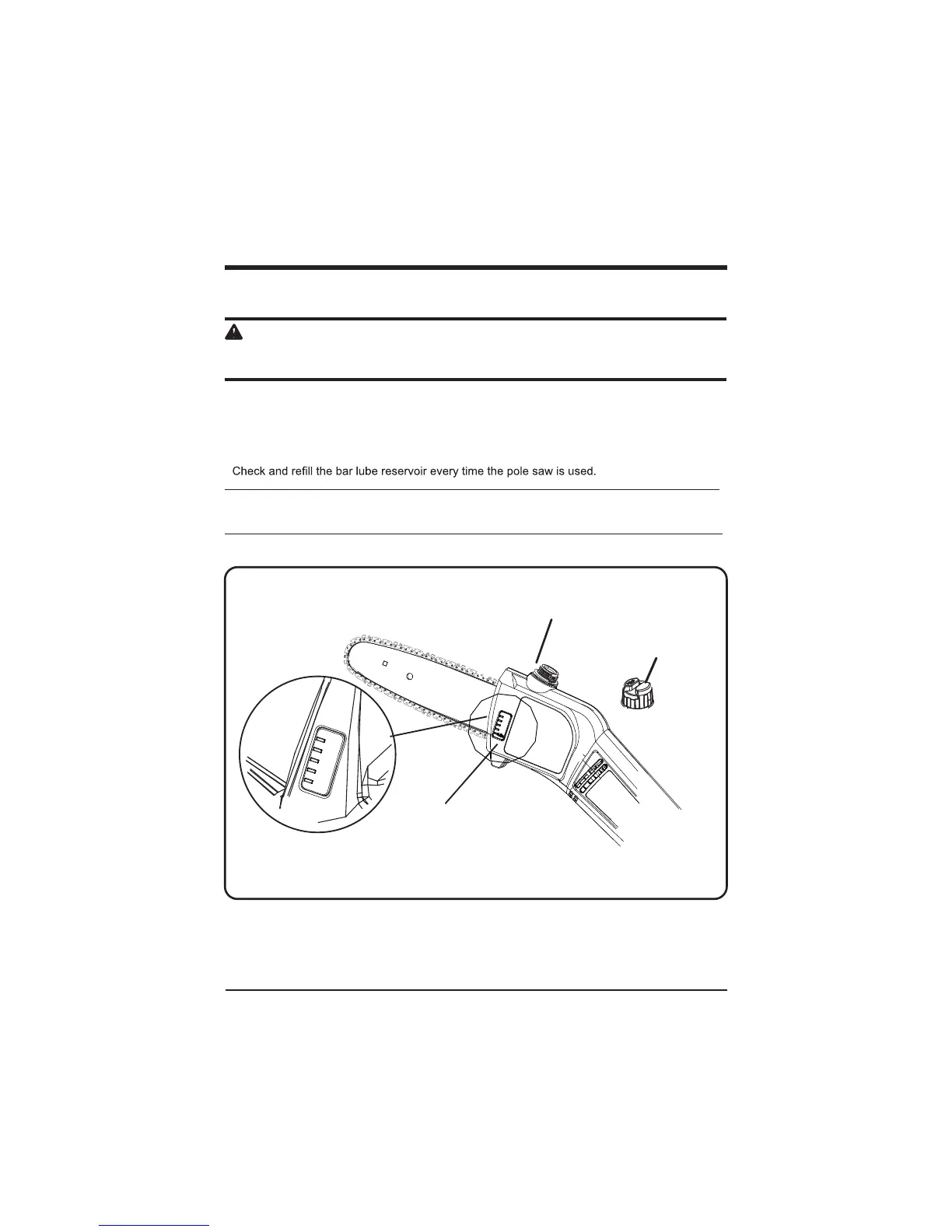 NOTE: Do not use dirty, used, or otherwise contaminated lubricants. Damage may occur to the oil pump, bar,