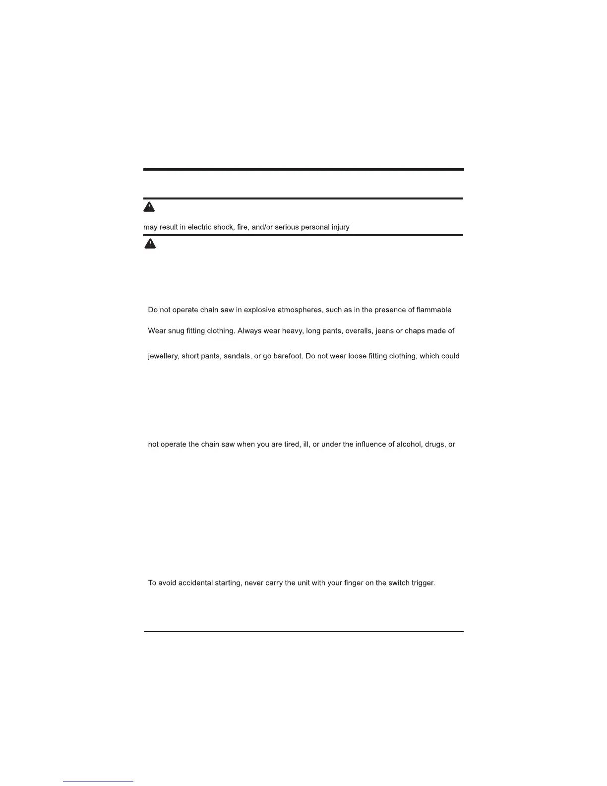 g when using the chain saw. Use common sense. Do