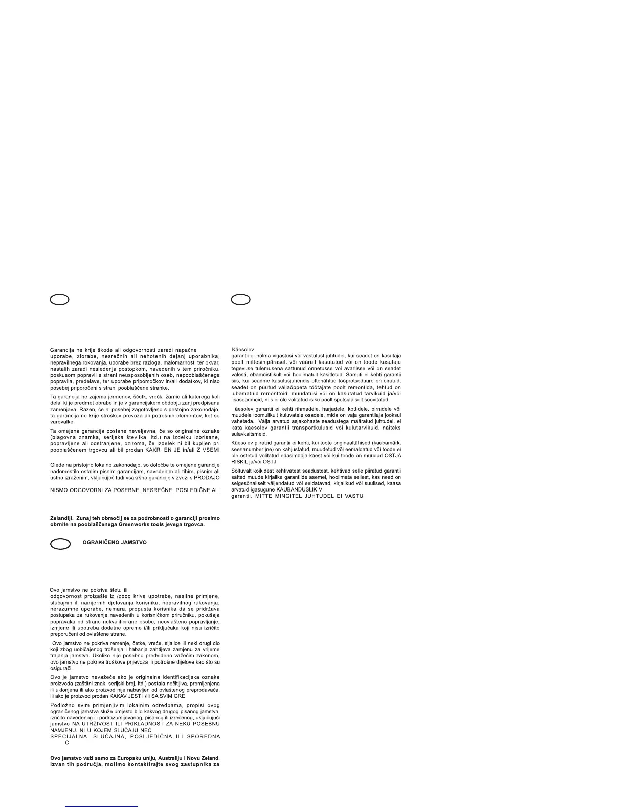 Uus-Meremaal. Väljaspool neid riike võtke palun ühendust Greenworks