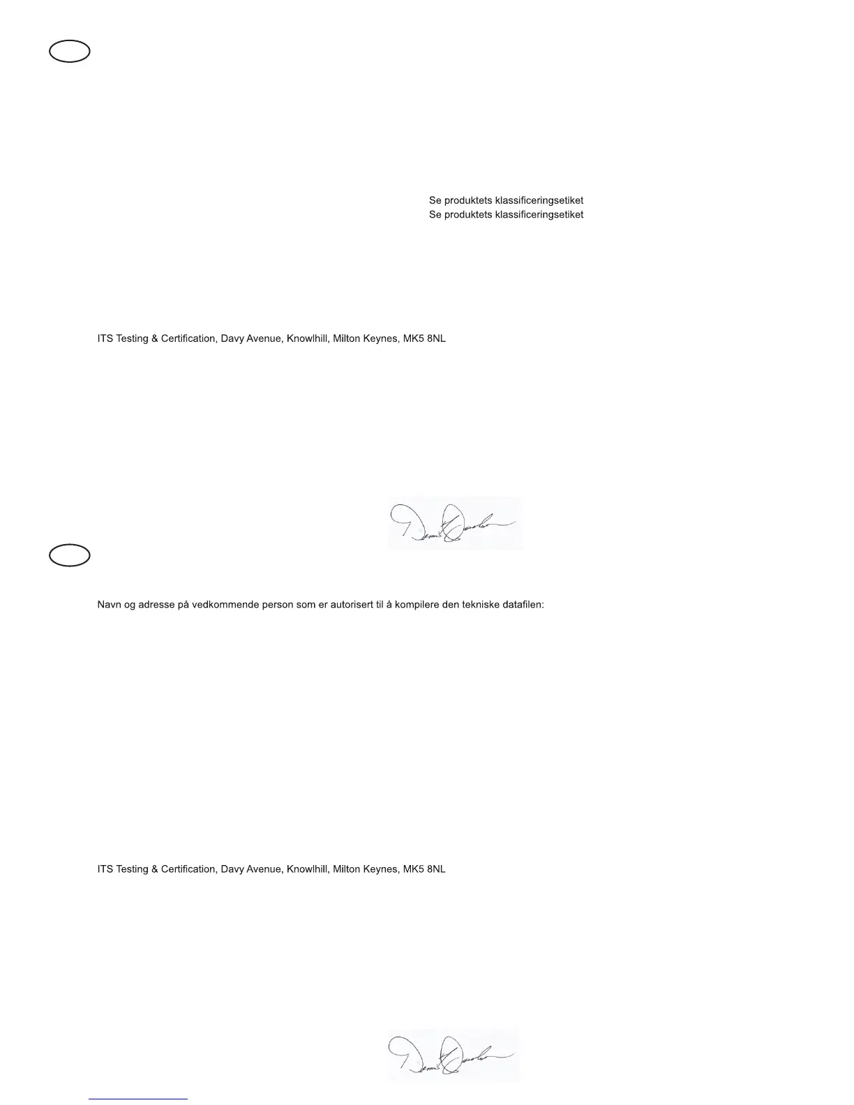 Navn og adresse på personen bemyndiget til at udarbejde de tekniske data: