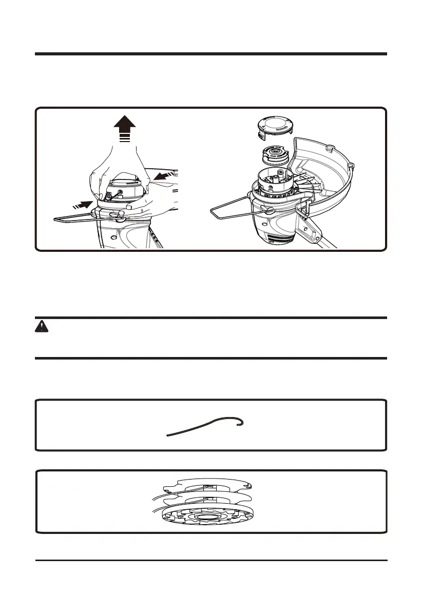 1. Appuyez le pattes du côté de la tête de coupe et enlevez le couvercle et la bobine.