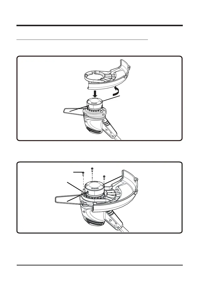 4. Inserte los tornillos en el cabezal de corte, ajustando la protección en su sitio con un
