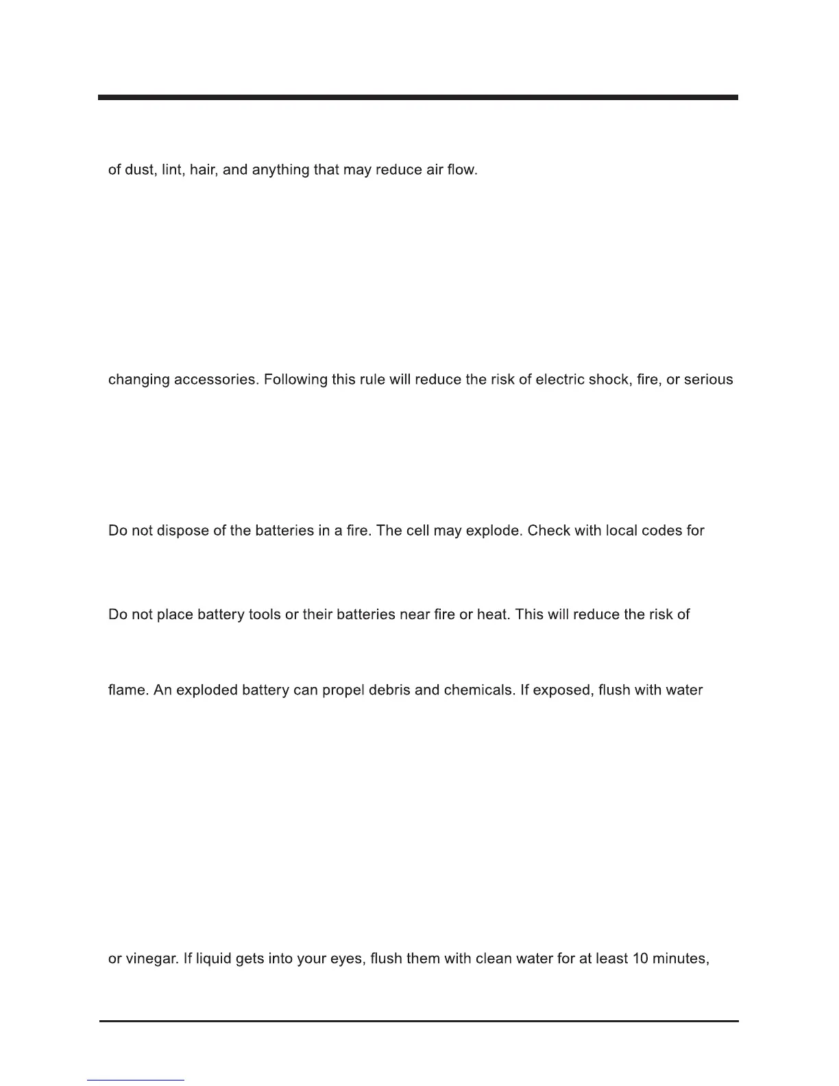 • Do not charge battery tool in rain, or damp or wet location. Following this rule will reduce the