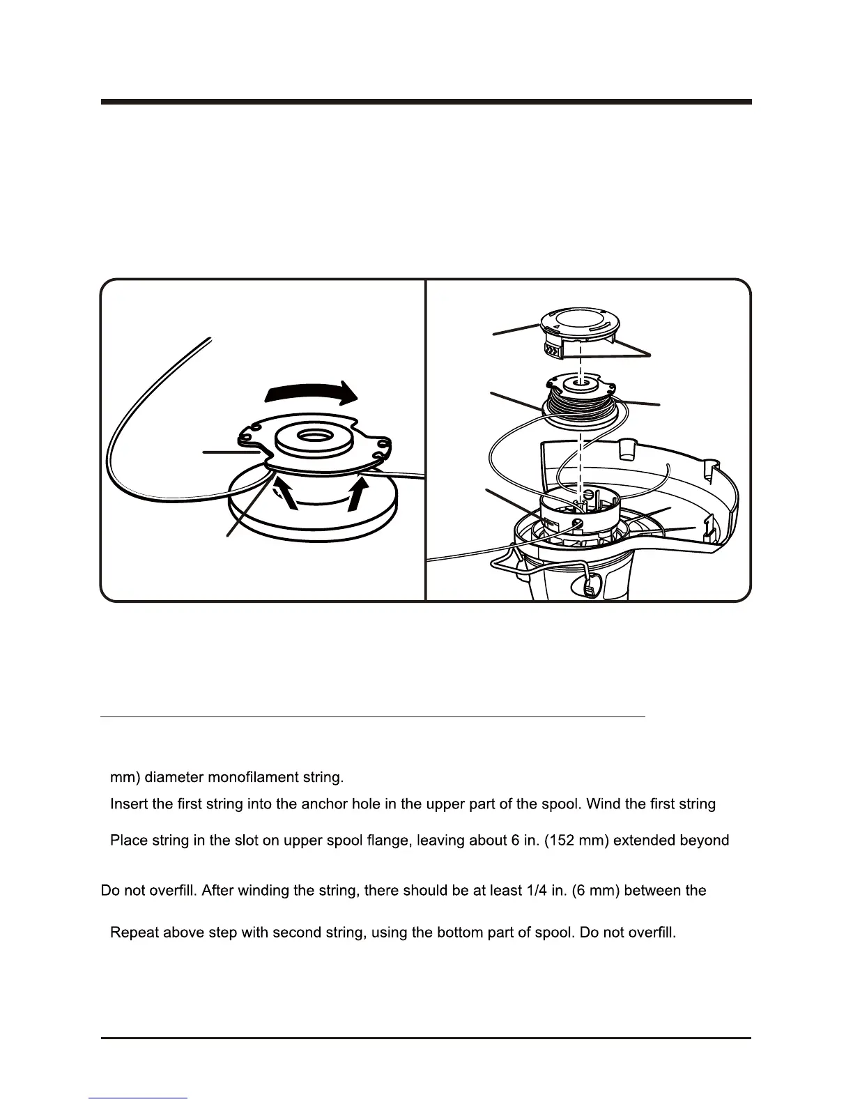 around the upper part of the spool counterclockwise, as shown by the arrows on the spool.